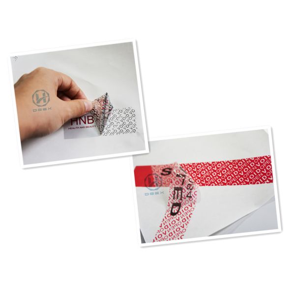 vinyl film or coated papers or synthetic vinyls. VOID stickers will leave texts "VOID"or